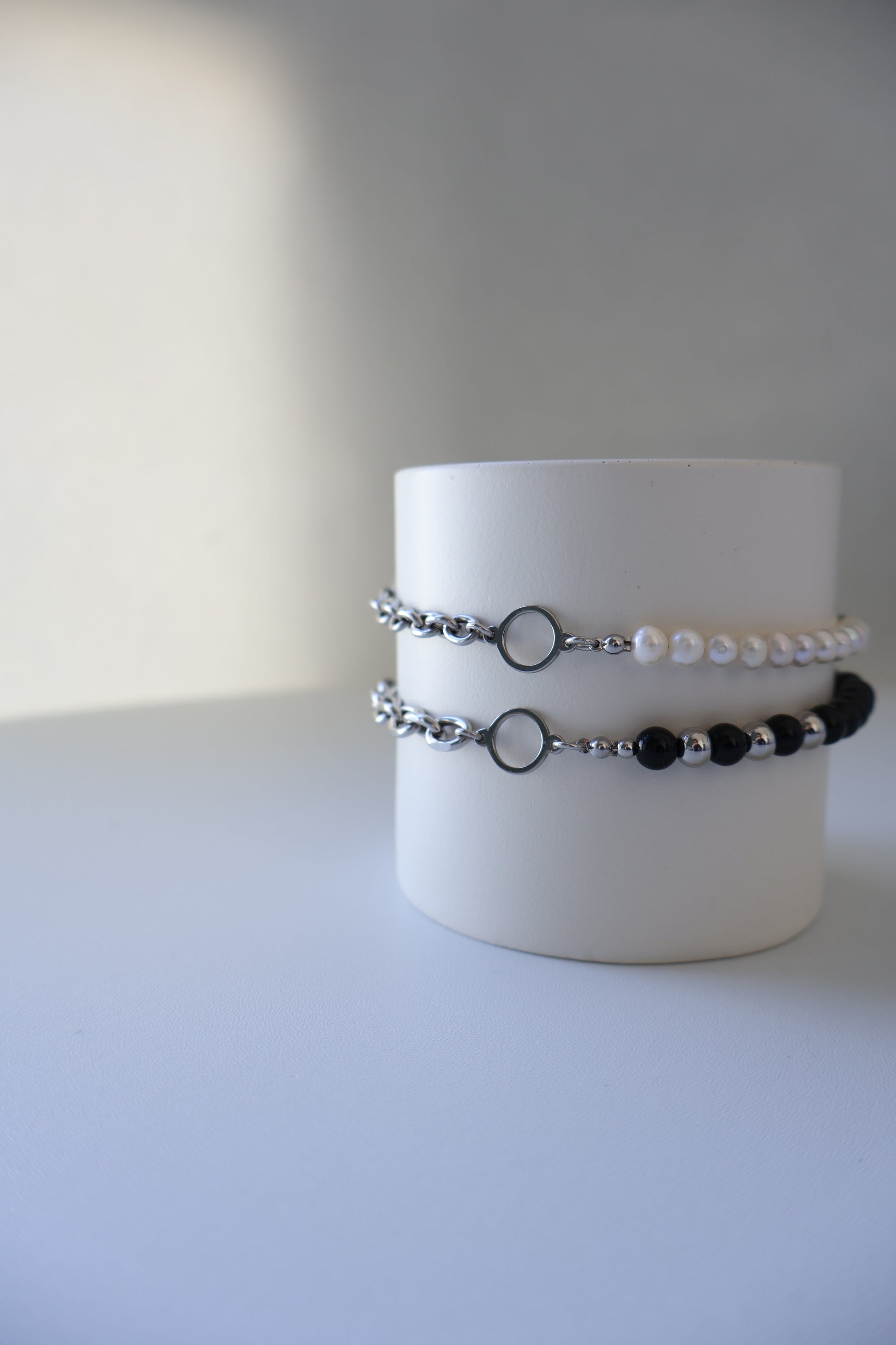 * MATERIALS : Surgical Steel (醫療鋼) x Glassbeads / Freshwater Pearl